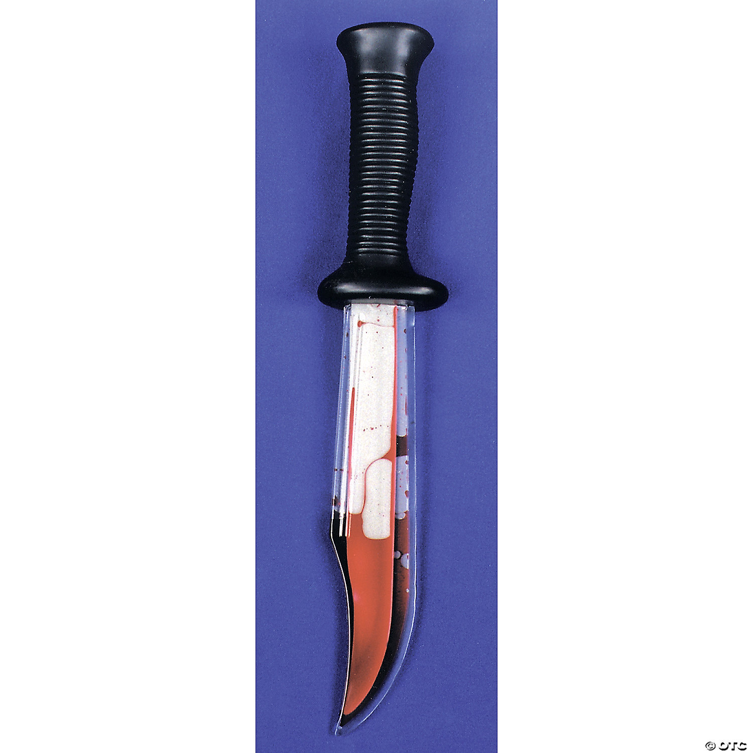 Who's Blood! Includes: 13" long. Simply hold the knife downward position, and the blood runs down the blade. Blood is contained under its clear outer shell with no mess and ready to use again and again!!.