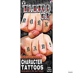 Tinsley Transfers Character Knuckle Old English Alphabet Temporary Tattoos