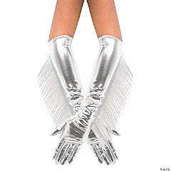 Adults Metallic Silver Fringe Long Gloves Costume Accessory