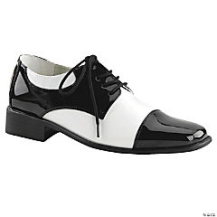 Adults Black & White Pinstripe Ganster Hat with White Hatband