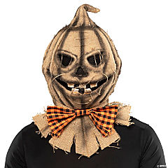 Adults Scarecrow Pumpkin Head Halloween Mask with Bowtie – One Size