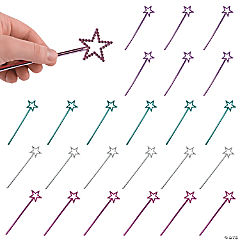 19" Pastel-Colored Star with Glitter Plastic Wands- 12 Pc.
