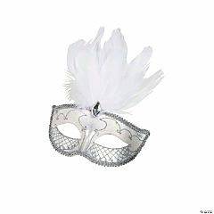 Adults White Plastic Carnival Mask with Jewel & Feathers - One Size