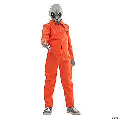 Kids Area 51 Orange Jumpsuit Costume with Alien Latex Mask - 8-10