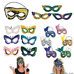 Mardi Gras Sequin & Feather Masks- 12 Pc.