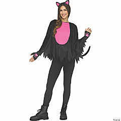 Adults Black & Pink Polyester Pretty Kitty Poncho Costume Accessory