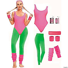 Adults Pink & Neon Green 80's Workout Costume - One Size