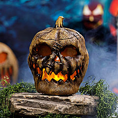 8" Rotten Flaming Pumpkin™ With Timer Halloween Decoration