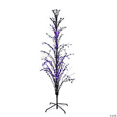 6' Pre-Lit Black Cascade Outdoor Halloween Twig Tree Purple Lights