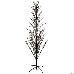 9' Pre-Lit Black Cascade Outdoor Halloween Twig Tree Orange Lights