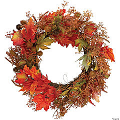 Northlight 24-Inch Autumn Harvest Maple Leaf with Berries Artificial Wreath; Unlit