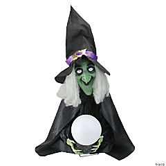 Northlight 26" Pre-Lit Black and Green Sitting Fortune Witch with Magic Ball Halloween Decor