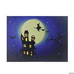 Northlight Fiber Optic and LED Lighted Witch in the Moon Halloween Canvas Wall Art 12" x 15.75