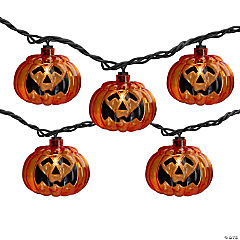 Set of 10 Jack O Lantern Shaped Halloween Lights 7.5ft Black Wire