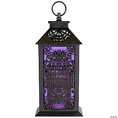 LED LIghted Bats "Happy Halloween" Candle Lantern - 11" - Black
