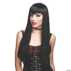 Adults Black Long with Bangs Vamp Wig