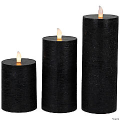 Set of 3 Flameless Solid Black Flickering LED Halloween Wax Pillar Candles 8
