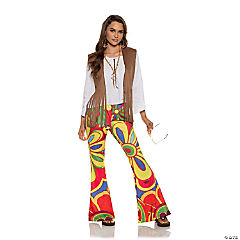 Adults Faux Suede Fringed Vest with Bell Bottom Pants Costume - Medium