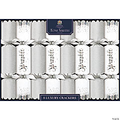 8" Tom Smith Silver & White Sparkle Luxury Christmas Party Crackers - 8 Pc.