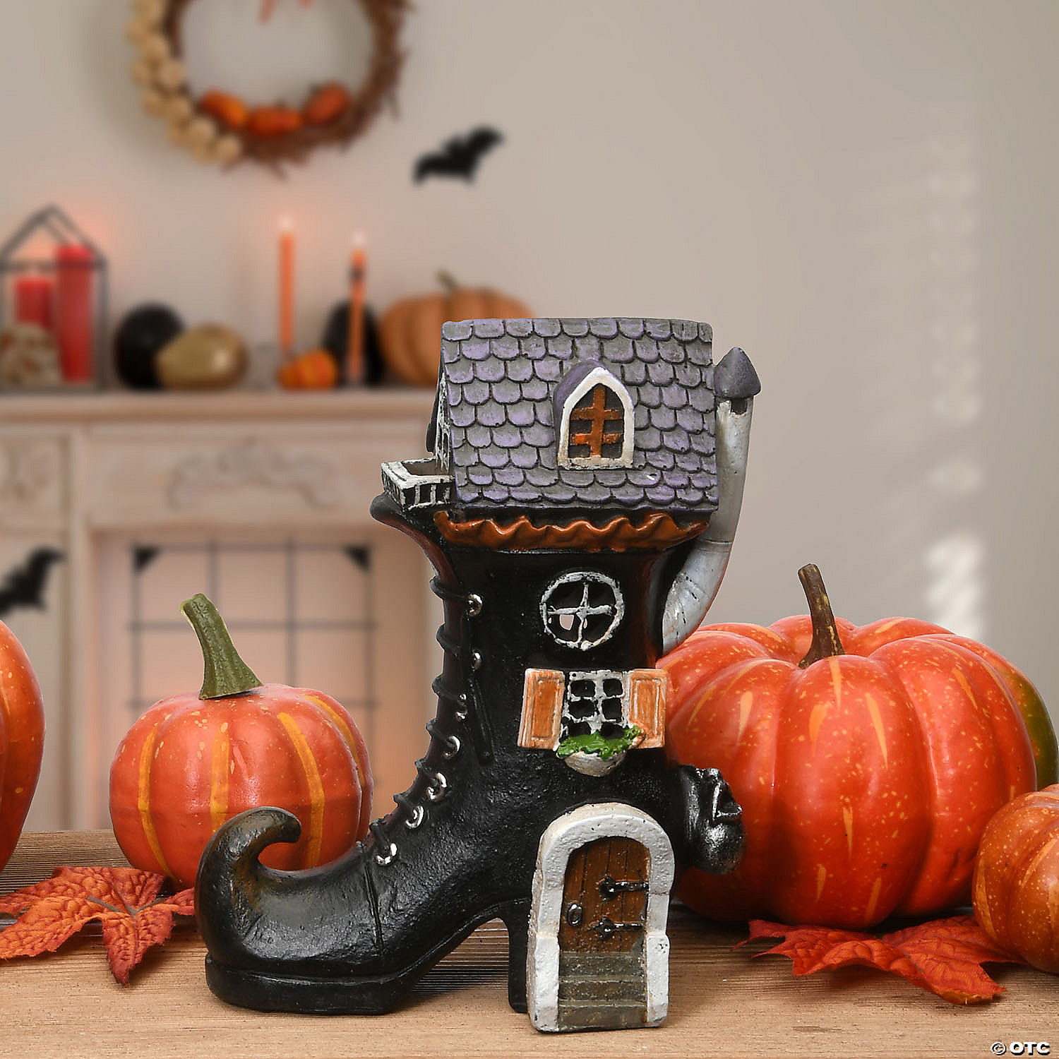 This tabletop Halloween decoration is constructed of strong polyresin material featuring handcrafted sculpting and intricate detail. Designed as a tall witch’s boot, this haunted house has a stovepipe chimney, antique door and assorted window openings. A battery powered LED light shines from inside through the windows for a soft glow and added charm. Batteries included. Special Shipping Information: This item ships separately from other items in your order. This item cannot ship to a P.O. Box. This item may be subject to additional processing days. Item is not eligible for expedited shipping. You may initiate a return for unused items within 30 days, if the items are in original packaging with all original materials included with the shipment.
