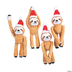 Christmas Long Arm Stuffed Sloths - 12 Pc.