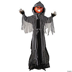 5 Ft 10 3/4" Animated Standing Light-Up Pumpkin Man in Hooded Cloak Halloween Decoration