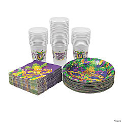 170 Pc. Bulk Mardi Gras Tableware Kit for 50 Guests