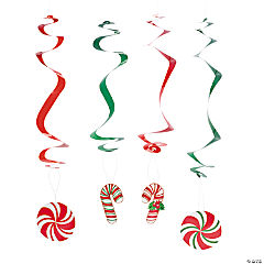 22" Candy Cane Hanging Paper Swirl Decorations - 12 Pc.