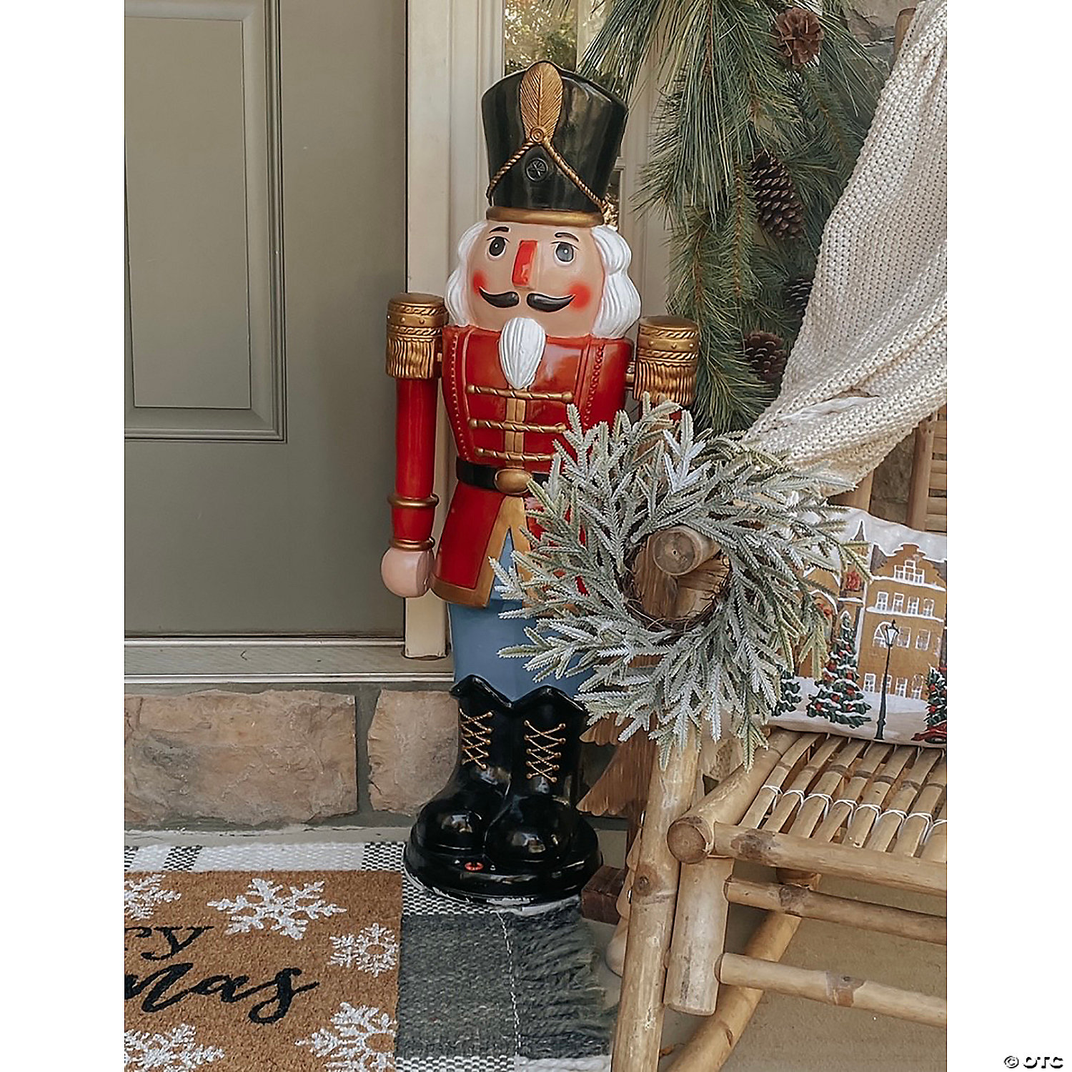 This nutcracker is a Christmas decoration that is full of vintage charm! He's an ideal prop for your yuletide pageant or play. Recreate your childhood Christmas memories when you display him next to the tree or on the kitchen table! He features movable arms and is a keepsake that you'll treasure for years to come! Plastic. 3 ft. x 14" x 10"