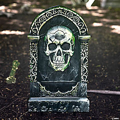 21" Light-Up Tombstone with Skull Halloween Decoration