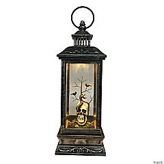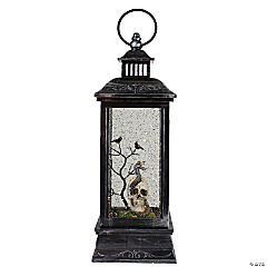 Northlight 11" Black and Brushed Silver LED Skull Head Halloween Snow Globe Lantern